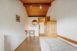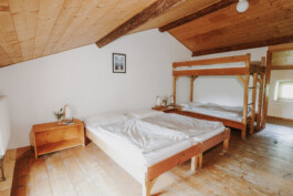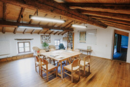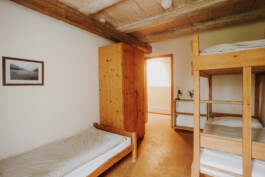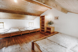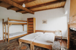 L’edificio è lungo circa 30 m e largo 6 m ed ha 3 piani. Al primo piano c’è una grande cucina-soggiorno con camino. Una sala riunioni, adatta ad ospitare seminari, si trova al secondo piano. Complessivamente ci sono 9 camere da letto, che possono alloggiare fino a 31 persone. Ci sono anche 2 piccole camere singole per i capigruppo. L’arredamento delle camere è rustico e pratico, e sono ben riscaldate.