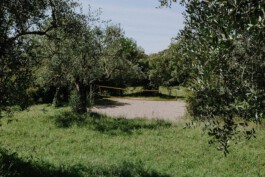 Il terreno si estende davanti alla casa verso sud mentre sul lato sinistro si alza a terrazza terminando con un boschetto che dà ristoro nei giorni più caldi. Il vasto prato dà la possibilità di organizzare feste e giochi, dove è allestito anche un campo da pallavolo.